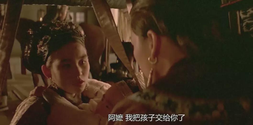 他妈妈抱着睡眼惺忪的小溥仪交给阿嬷,无奈说:“我把孩子交给你了,往后只有你疼他了。”